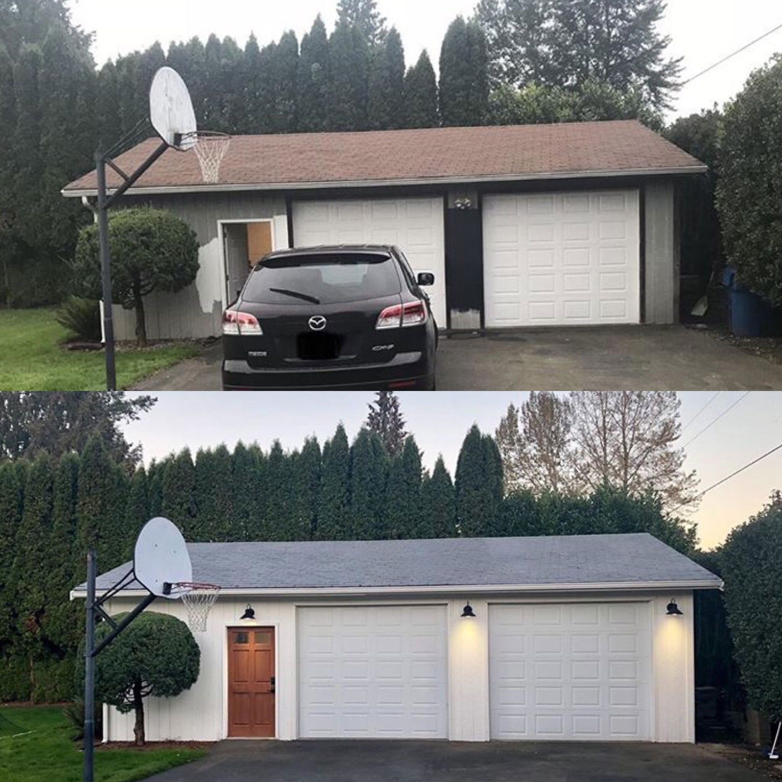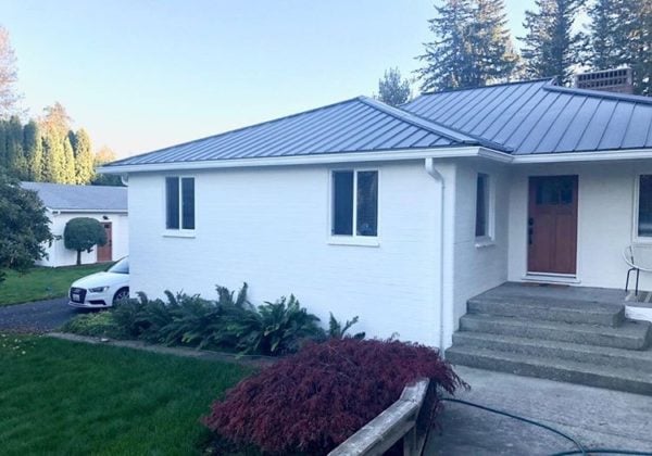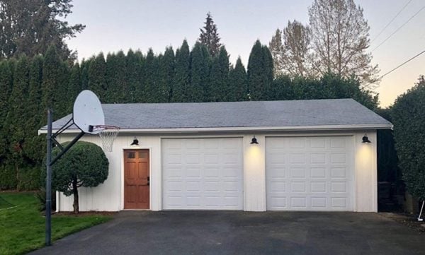 Rachel updated the exterior of her brick home with a fresh, modern coat of white paint, which pairs beautifully with her salvaged glowing fir doors from Second Use! Rachel replaced both the front and garage doors.