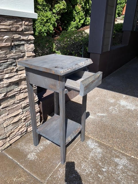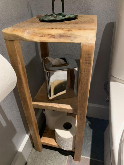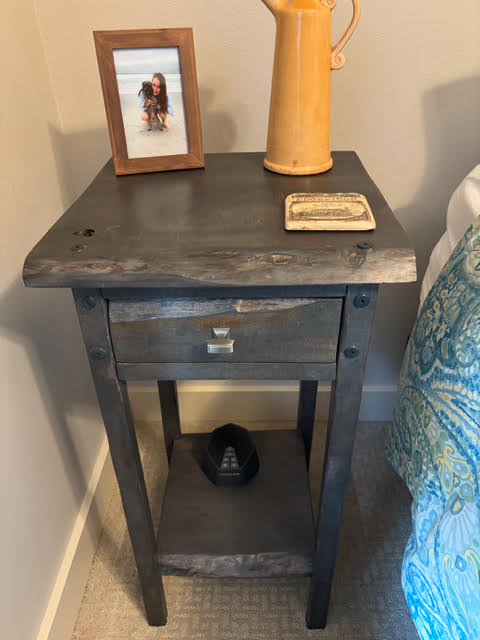 Second Use fan and customer Greg H., was kind enough to submit some of his projects, which largely feature materials from our store(s)! First up, we’ve got 2 side tables that are perfectly rustic, celebrate the unique features of live edge lumber, and fit their new spaces like a dream!