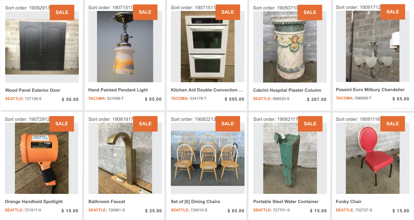 Cabinets, doors, and lights oh my! Chairs and boxes aplenty! Maybe even a few faucets, appliances, whose-its and what-nots! Better look and see if there’s a treasure you need that is now at a new and improved price point.