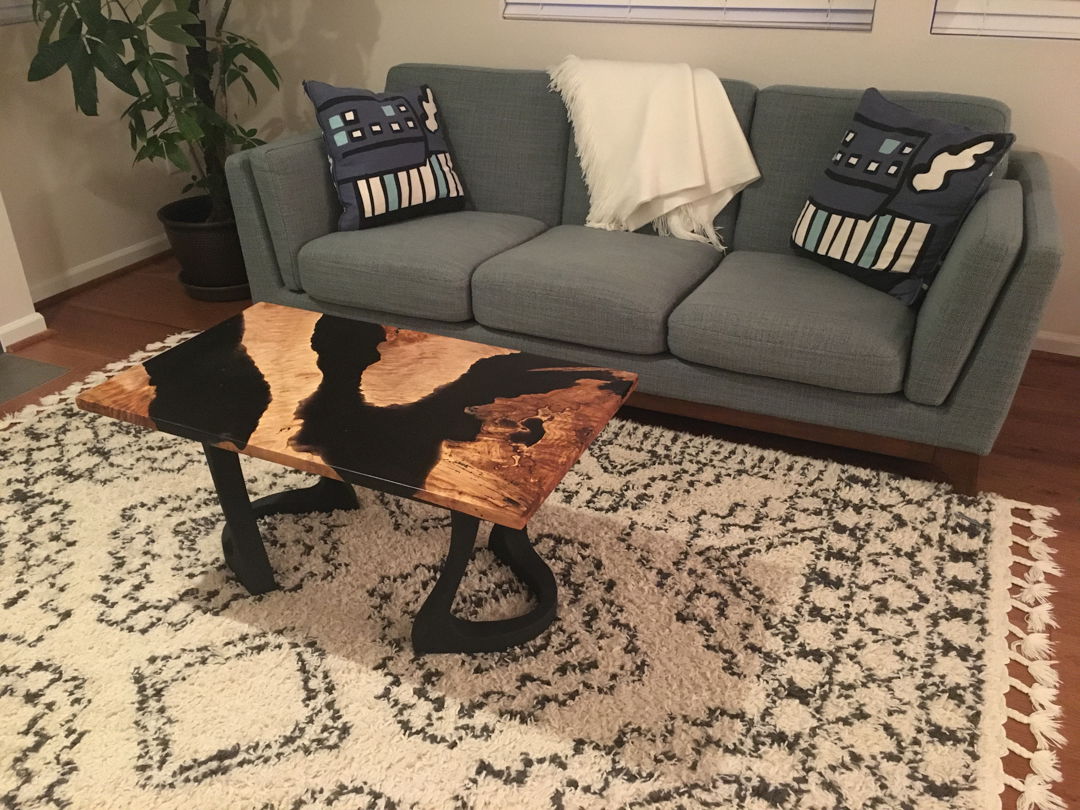 As it sat next to my $1000 Article couch, the maple epoxy table had not changed its soul, it still looked honest, and sincere, just as before, but with a hint of added Glamour, perhaps making the couch a little jealous.