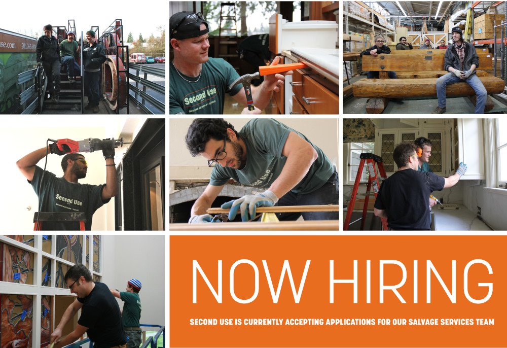 Did your New Year’s Resolution happen to be to pursue a career in a field that benefits both the environment and local community while affording you the opportunity to work with your hands and get the freshest pick of salvaged building materials? Well it can be: Second Use is hiring!