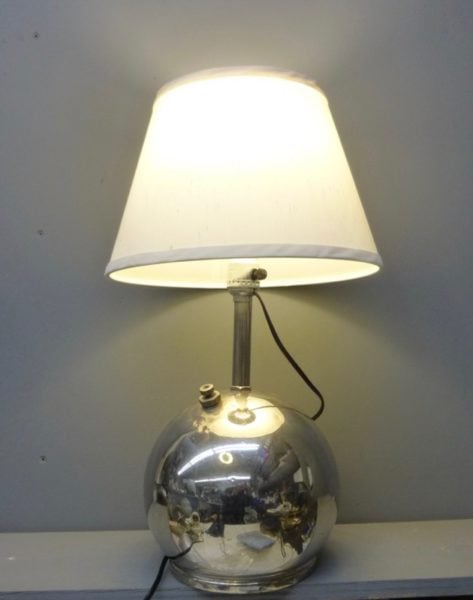 Our resident in-house lighting restorer, refurbisher, and all around creative light fixture powerhouse Anne made this lovely table lamp out of a Coleman lantern. Polished and chic, with tons of salvage charm, this would look great in any space!