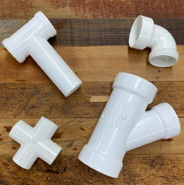 Plumbing fittings and parts such as drain assemblies, shower heads, p-traps, soap dishes, toilet paper holders, towel rods, valves, etc.