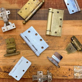 Door hardware like escutcheons, rosettes, mortises, tube latches, spindles, doorstops, skeleton keys, thumb turns, surface bolts, peepholes, etc.